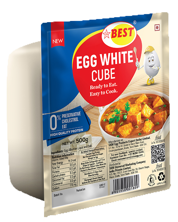 Our Egg White Cube contains high-quality protein with zero percent cholesterol and fat in it. It has no fishy odour as our hens are fed with the vegetarian diet. And also, we assure the best quality and safe product with no pesticide and antibiotic residues in our eggs.